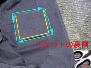 | ポケット完成。 | きれいに付けたいけど・・・何か良い方法あったら教えてください。まーこれでいこう。 |