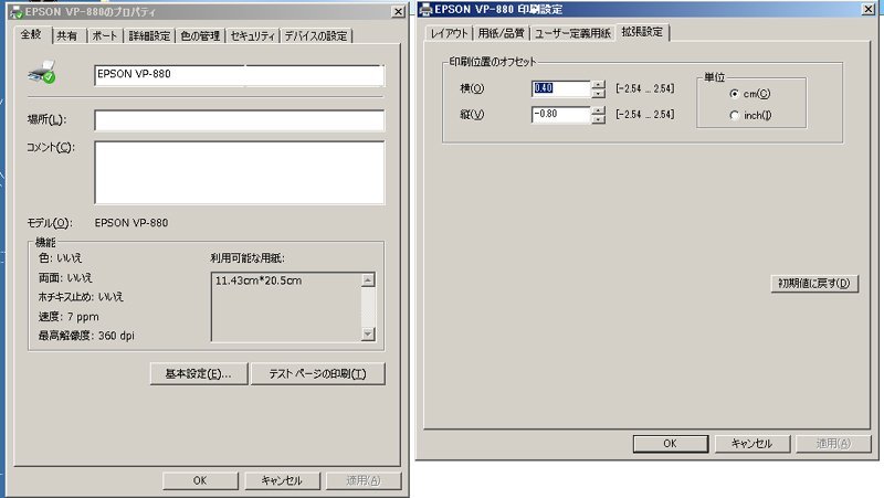 | 印刷位置のズレは本ソフトでも横軸は調整できますが、上記の印刷位置のオフセットで調整した方が分かりやすくてよいと思う。 |